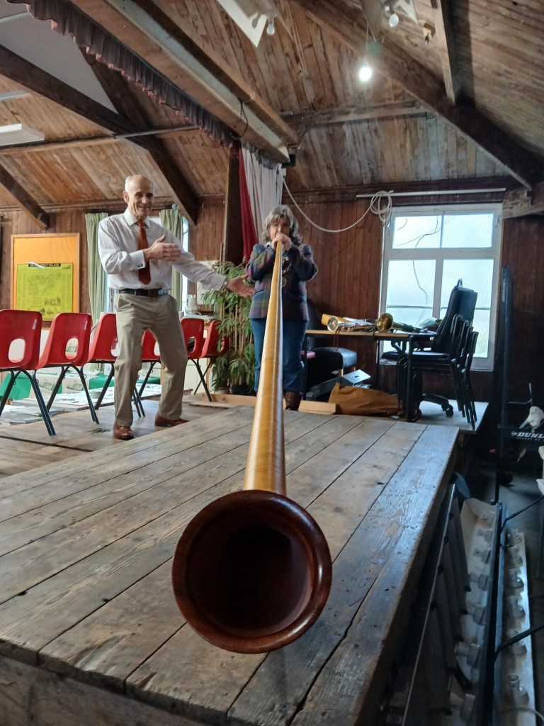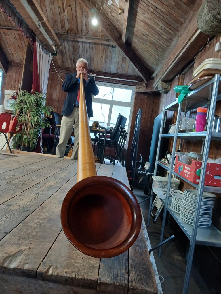 Tables groaned under the weight of home-made cakes, children were treated to gifts and everyone present was invited to try out an alpine horn. Visitors included the Mayor of West Devon Borough Council, Debo Sellis and the Deputy Mayor of Tavistock Town Council, Steve Hipsey.